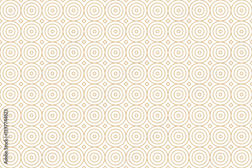 Wall mural seamless geometric pattern of gold concentric circles and small squares and striped lines on white b - Wall murals Wall mural seamless geometric pattern of gold concentric circles and small squares and striped lines on white b - Wall murals