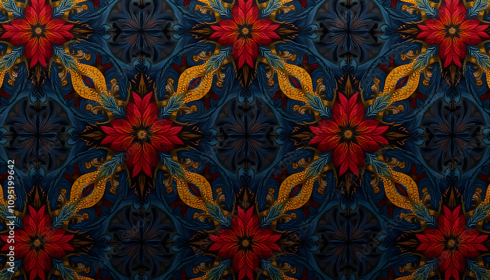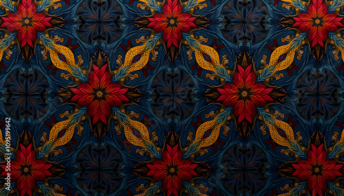 Wall mural : Seamless iridescent red-headed woodpecker texture with realistic patterns and soft lighting