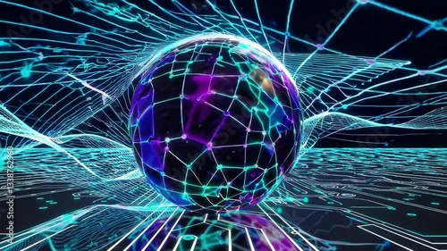 The watermark will not be included on Wall mural.: Seamless loop a vibrant, abstract digital sphere surrounded by dynamic lines and patterns, represent