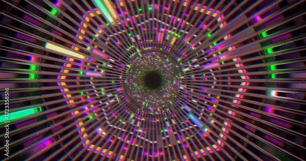 Wall mural seamless loop of a vibrant tunnel with pulsing lights and patterns creating an engaging visual backd