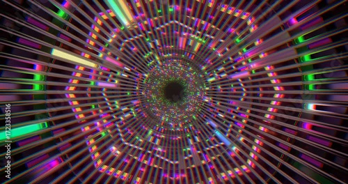 Wall mural : Seamless loop of a vibrant tunnel with pulsing lights and patterns creating an engaging visual backd