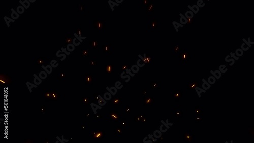 Seamless loop of smoke fire sparks rising up particle dust burning hot sparks random flowing on blacWall mural