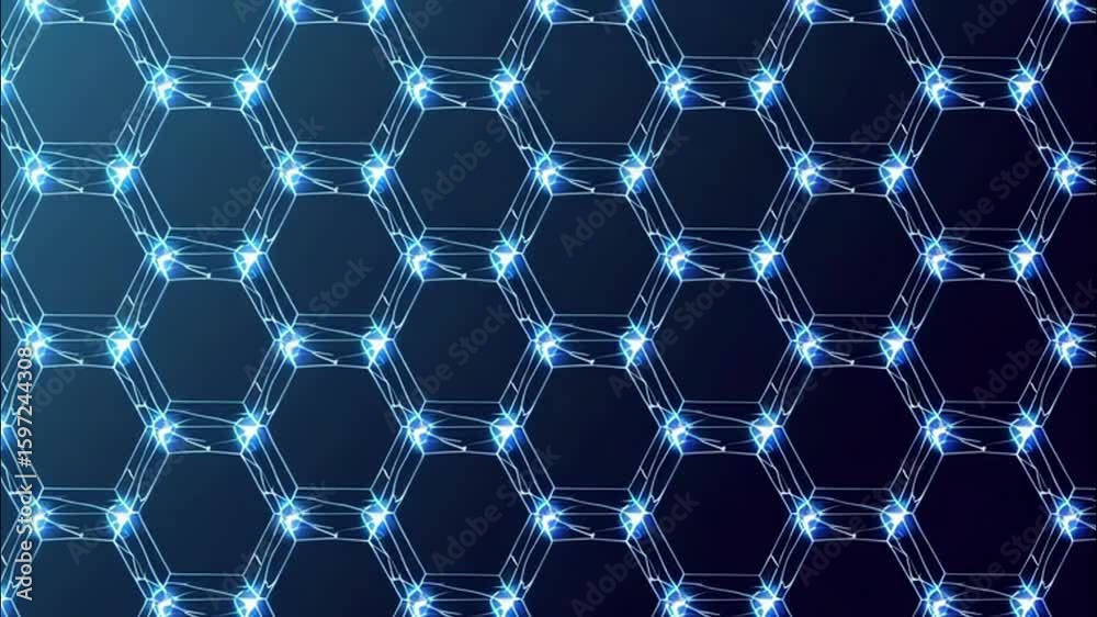 Wall mural seamless looping glowing hexagonal network pattern on dark background