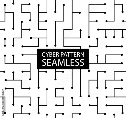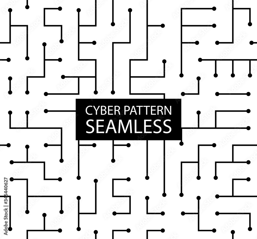 Wall mural seamless monochrome electronic pattern. vector circuit board background in high-tech style. cyber te - Wall murals Wall mural seamless monochrome electronic pattern. vector circuit board background in high-tech style. cyber te - Wall murals