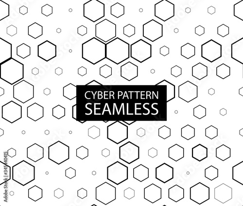 Wall mural seamless monochrome electronic pattern. vector hexagon background in high-tech style. cyber texture