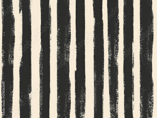 The watermark will not be included on Wall mural.: Seamless pattern featuring vertical black brushstroke stripes on light background, creating bold and