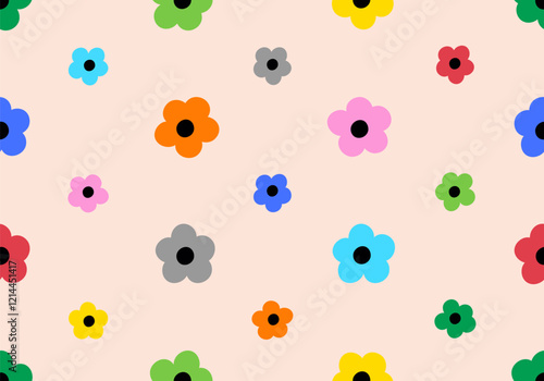 The watermark will not be included on Wall mural.: Seamless pattern of spring colorful flower elements - fun doodle flower texture background pattern wi