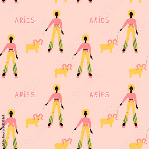 Wall mural seamless pattern with aries - astrological zodiac sign. abstract print with the ram.