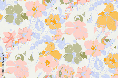 The watermark will not be included on Wall mural.: Seamless pattern with colorful pattern of abstract flowers