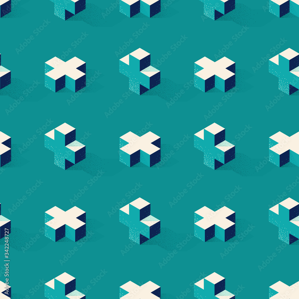 The watermark will not be included on Wall mural.: Seamless pattern with cross or plus shape on green background in modern dotted texture style