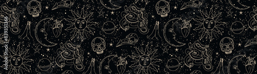 Seamless pattern with mystical elements - set of linear vector illustrations - celestial illustrationsWall mural