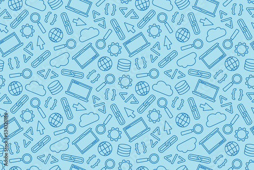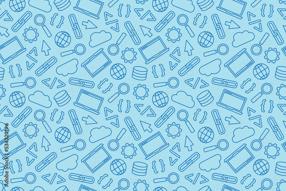 The watermark will not be included on Wall mural.: Seamless pattern with programming computer software, application related icons- vector illustration