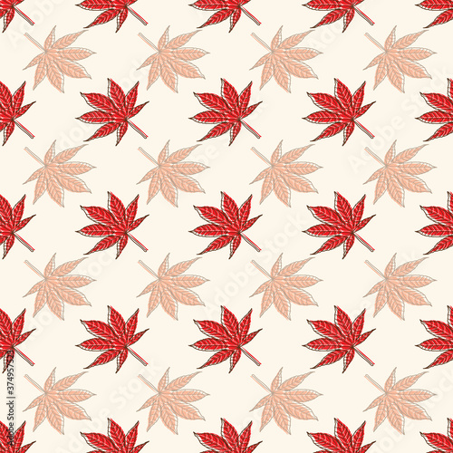 The watermark will not be included on Wall mural.: Seamless pattern with red maple leaf, abstract geometric leaf texture design