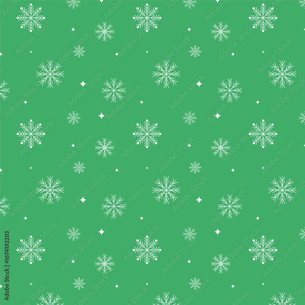 The watermark will not be included on Wall mural.: Seamless pattern with winter snowflakes - christmas snowflake repeat pattern isolated on green backgro