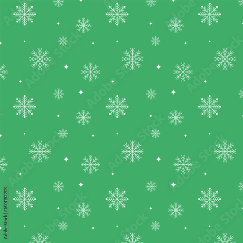 Wall mural seamless pattern with winter snowflakes.christmas snowflake repeat pattern isolated on green backgro