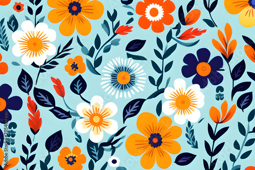 Wall mural seamless patterns decorated with flowers - beautiful patterns in the form of local fabrics and pixel