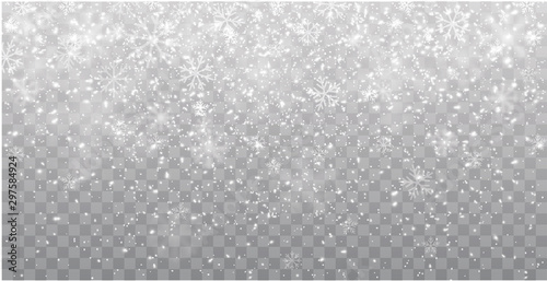 Wall mural : Seamless realistic falling snow or snowflakes - isolated on transparent background - stock vector -