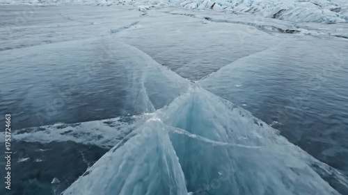 Wall mural : Seamlessly looping abstract pattern of slowly shifting glacial ice with deep, elegant cracks and sub