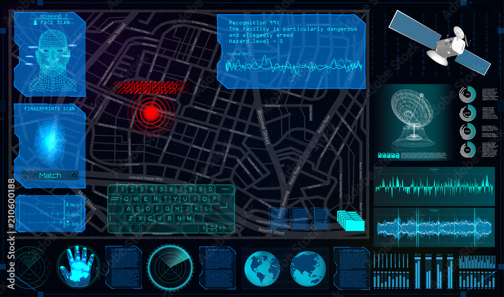 Wall mural search and track a person from space in the style of hud. search and recognition on the map and demo - Wall murals Wall mural search and track a person from space in the style of hud. search and recognition on the map and demo - Wall murals