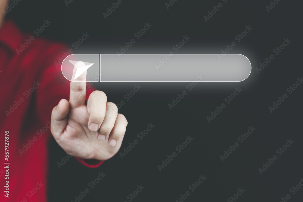 Wall mural search engine optimization concept man's hand using a computer to search for information on the inte