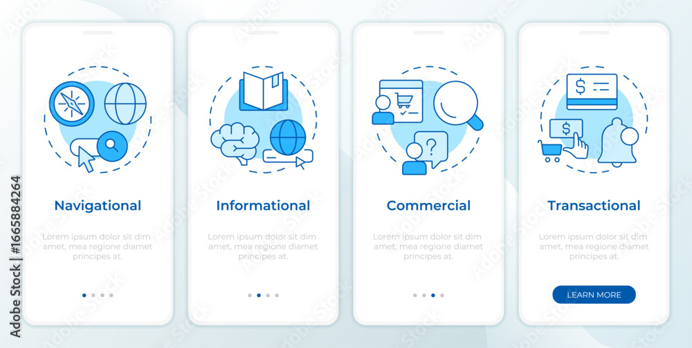 Search intent control blue onboarding mobile app screen - walkthrough 4 steps editable graphic instruWall mural