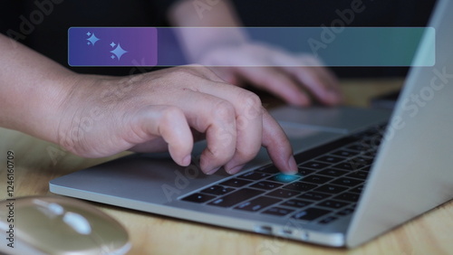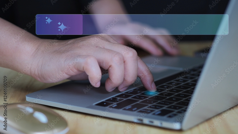 The watermark will not be included on Wall mural.: Searchengine optimization seo networking concept - handof businessman working with computer laptop on