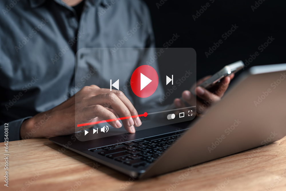 Wall mural : Searching data online class workshop or live stream broadcast in online class, watching video on int