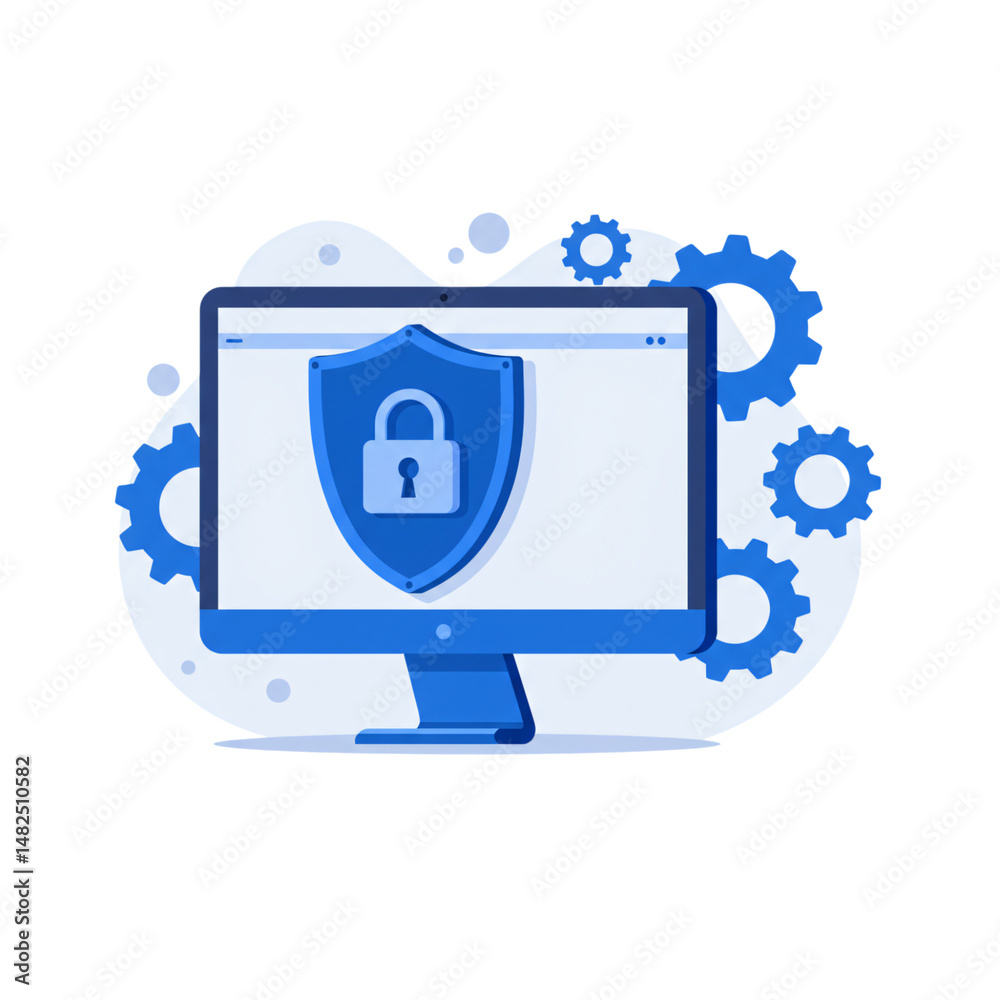 Secure computer monitor display abstract concept design - digital data shield and gear icon graphic aWall mural