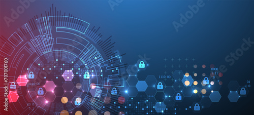 Wall mural : Secure digital background - virtual confidential, programming protection - hand drawn vector -