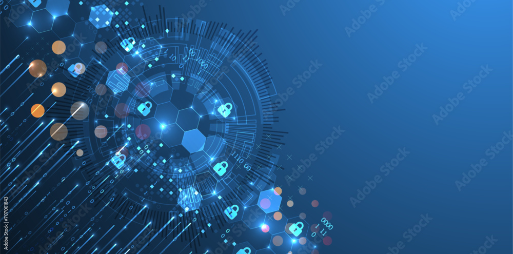 Wall mural secure digital background. virtual confidential, programming protection. hand drawn vector.