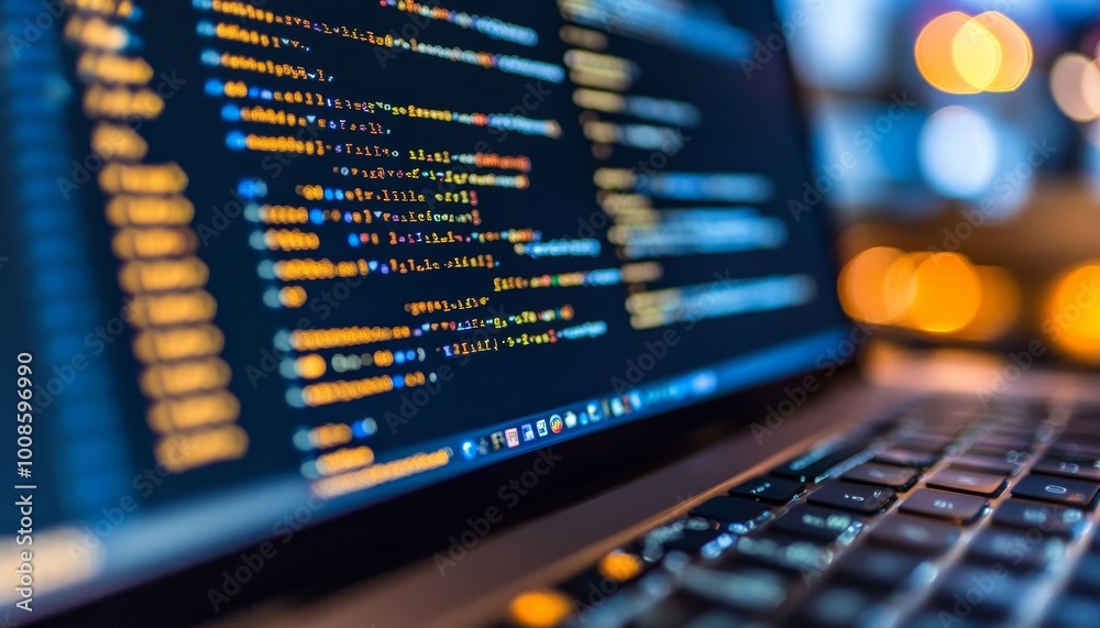 The watermark will not be included on Wall mural.: Secure software development code on computer screen with blurred background display