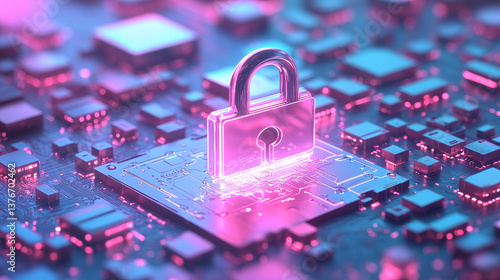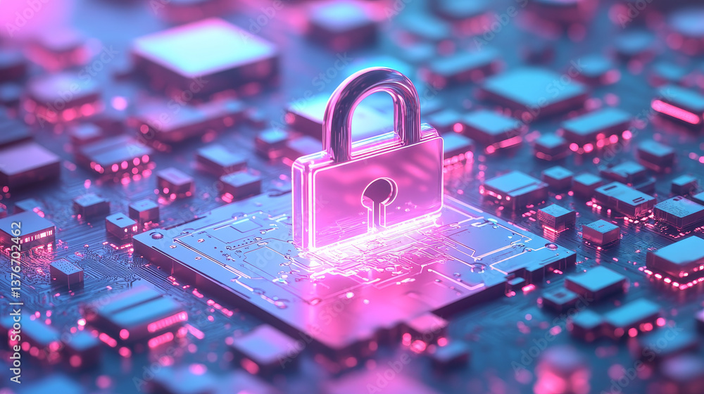 Wall mural secured network 3d illustration. protection of private data. hexagonal clusters of quantum architect