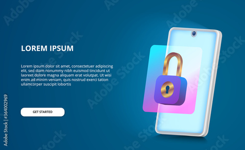Security for 3d handphone concept with padlock gradient modern illustration and glow screen with bluWall mural
