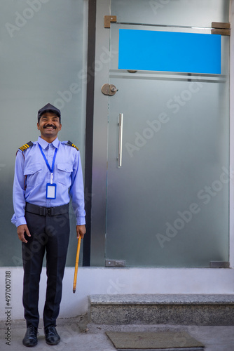 The watermark will not be included on Wall mural.: Security guard working in front of gate