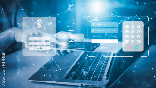 The watermark will not be included on Wall mural.: Security password login online concept hands typing and entering username and password of social med