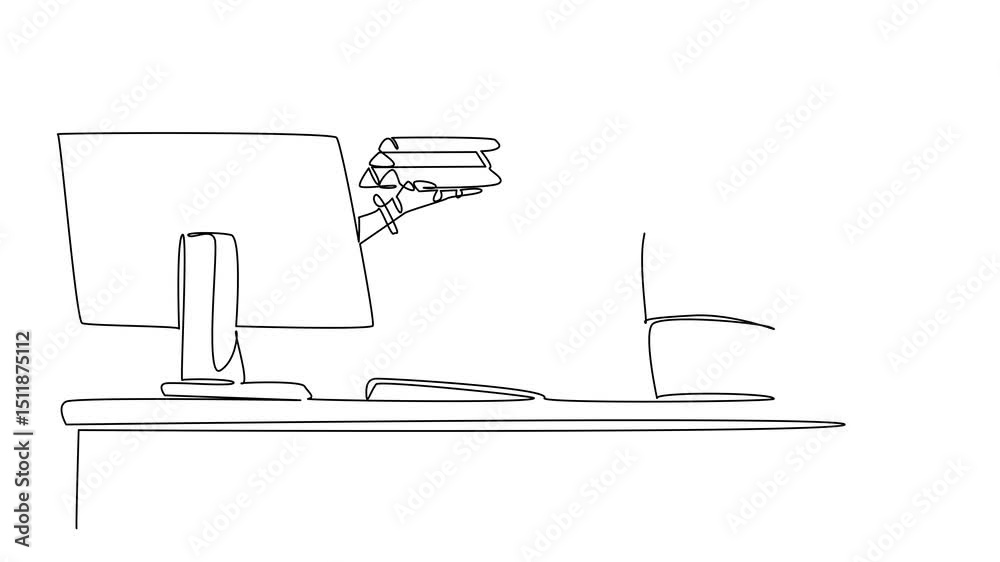 Wall mural self line drawing of robot hand out of monitor screen while holding gold stack. multiple benefits of - Wall murals Wall mural self line drawing of robot hand out of monitor screen while holding gold stack. multiple benefits of - Wall murals