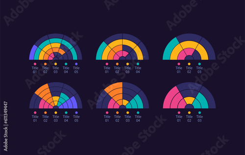 Wall mural semi circle infographic chart design template set for dark theme. different rates. visual data prese - Wall murals Wall mural semi circle infographic chart design template set for dark theme. different rates. visual data prese - Wall murals