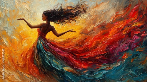Wall mural semiabstract dancer in motion where the figure dissolves into swirling dynamic patterns of vibrant c - Wall murals Wall mural semiabstract dancer in motion where the figure dissolves into swirling dynamic patterns of vibrant c - Wall murals