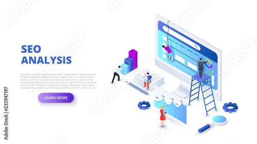 Wall mural seo analyses and optimization design concept with people. isometric vector illustration. landing pag - Wall murals Wall mural seo analyses and optimization design concept with people. isometric vector illustration. landing pag - Wall murals