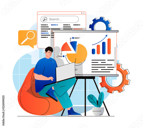 Wall mural seo analysis concept in modern flat design. man analyzes search results, works with data and making  - Wall murals Wall mural seo analysis concept in modern flat design. man analyzes search results, works with data and making - Wall murals