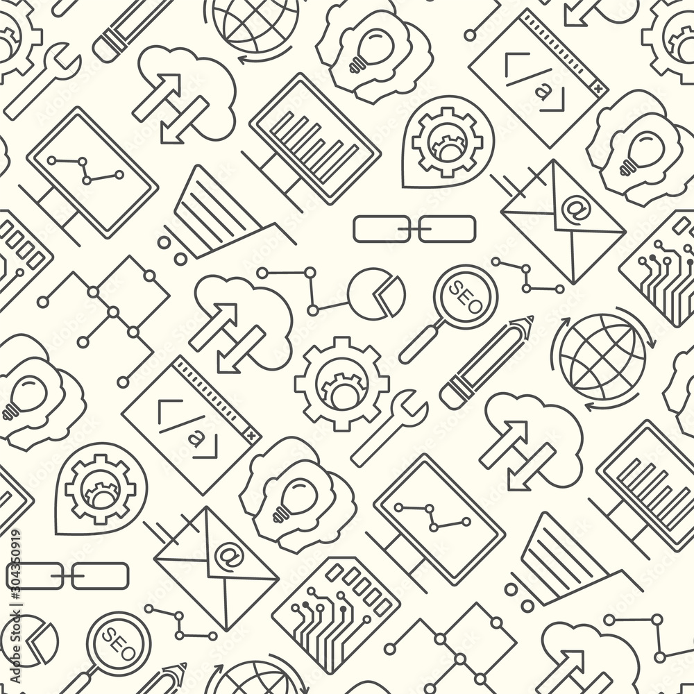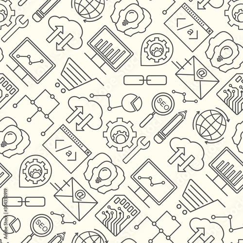 Seo and development seamless vector pattern with linear icons - line style seo and optimization seamlWall mural