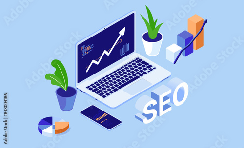 Wall mural seo computer - laptop with search engine optimisation rising graph showing growth and improvement. f - Wall murals Wall mural seo computer - laptop with search engine optimisation rising graph showing growth and improvement. f - Wall murals