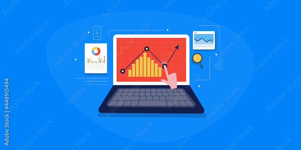 Wall mural seo concept on laptop computer, seo web traffic growth and data graph on virtual screen. website vis - Wall murals Wall mural seo concept on laptop computer, seo web traffic growth and data graph on virtual screen. website vis - Wall murals