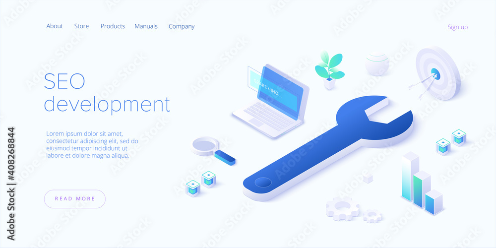 Wall mural seo development isometric vector illustration. website or webpage development concept. search engine - Wall murals Wall mural seo development isometric vector illustration. website or webpage development concept. search engine - Wall murals