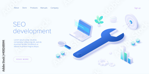 Seo development isometric vector illustration - website or webpage development concept - search engineWall mural