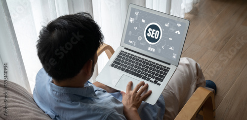 The watermark will not be included on Wall mural.: Seo search engine optimization for modish e-commerce and online retail business showing on computer