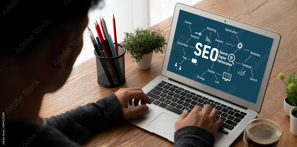 Wall mural seo search engine optimization for modish e-commerce and online retail business showing on computer  - Wall murals Wall mural seo search engine optimization for modish e-commerce and online retail business showing on computer - Wall murals