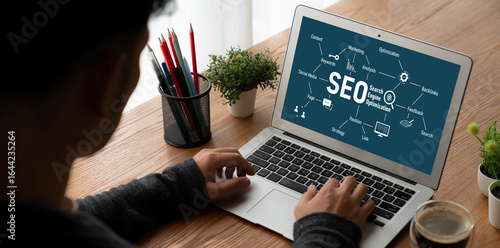 Wall mural : Seo search engine optimization for modish e-commerce and online retail business showing on computer