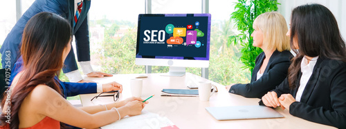 Wall mural : Seo search engine optimization for modish e-commerce and online retail business showing on computer