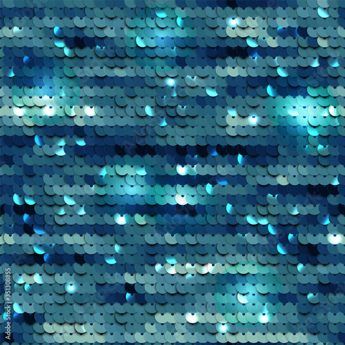 Wall mural : Sequined blue texture - fabric with palliettes - seamless vector realistic background of shiny materia